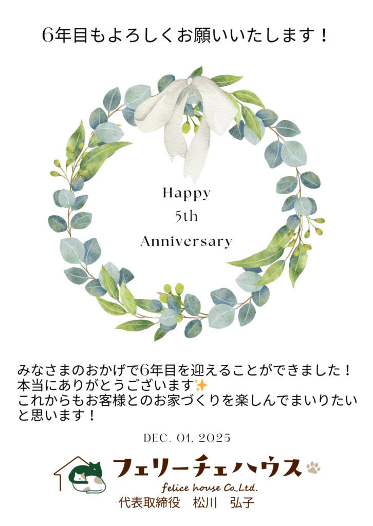 さて、本日12月1日felice house はおかげさまで6年目を迎えることができました🎊👏✨