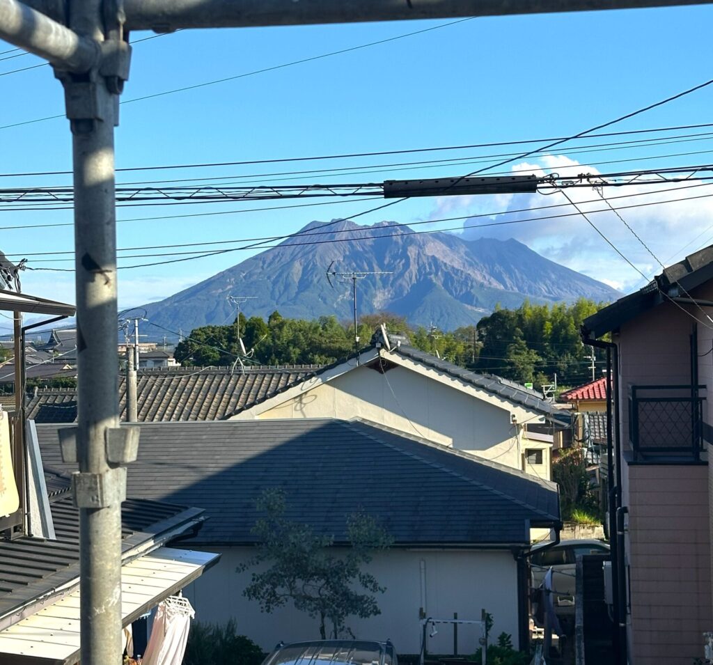 棟も上がったので2階に上がってみると、きれいな『桜島』が目の前に‼😍♬✨
